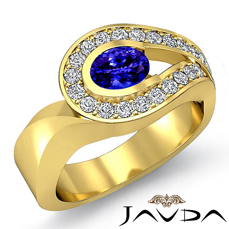 style Engagement Ring, center is Oval shape D Block Tanzanite Report by , Color & clarity, Made in 18k Yellow Gold (1.5 ct. tw.)