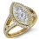 Bezel Halo Prong Setting style Engagement Ring, center is Marquise shape Diamond Report by GIA, I Color & SI1 clarity, Made in 18k Yellow Gold (1.75 ct. tw.)