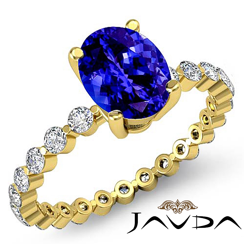 style Engagement Ring, center is Oval shape D Block Tanzanite Report by , Color & clarity, Made in 18k Yellow Gold (1.7 ct. tw.)