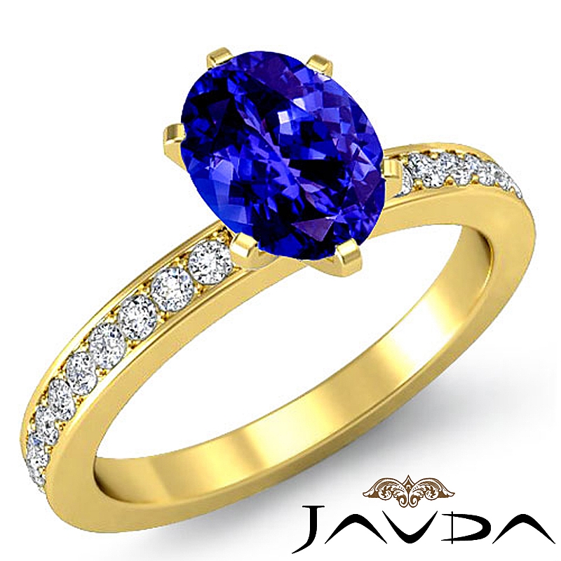 style Engagement Ring, center is Oval shape D Block Tanzanite Report by , Color & clarity, Made in 14k Yellow Gold (1.5 ct. tw.)