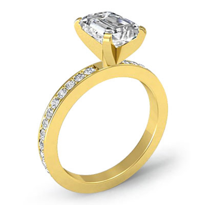 style Engagement Ring, center is Emerald shape Diamond Report by IGI, E Color & VS1 clarity, Made in 18k Yellow Gold (3 ct. tw.)