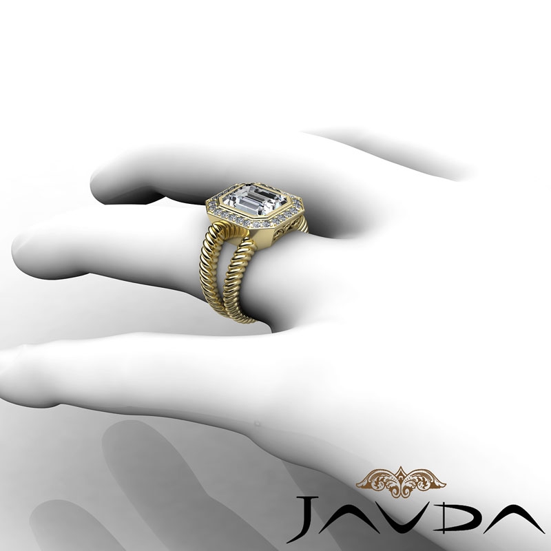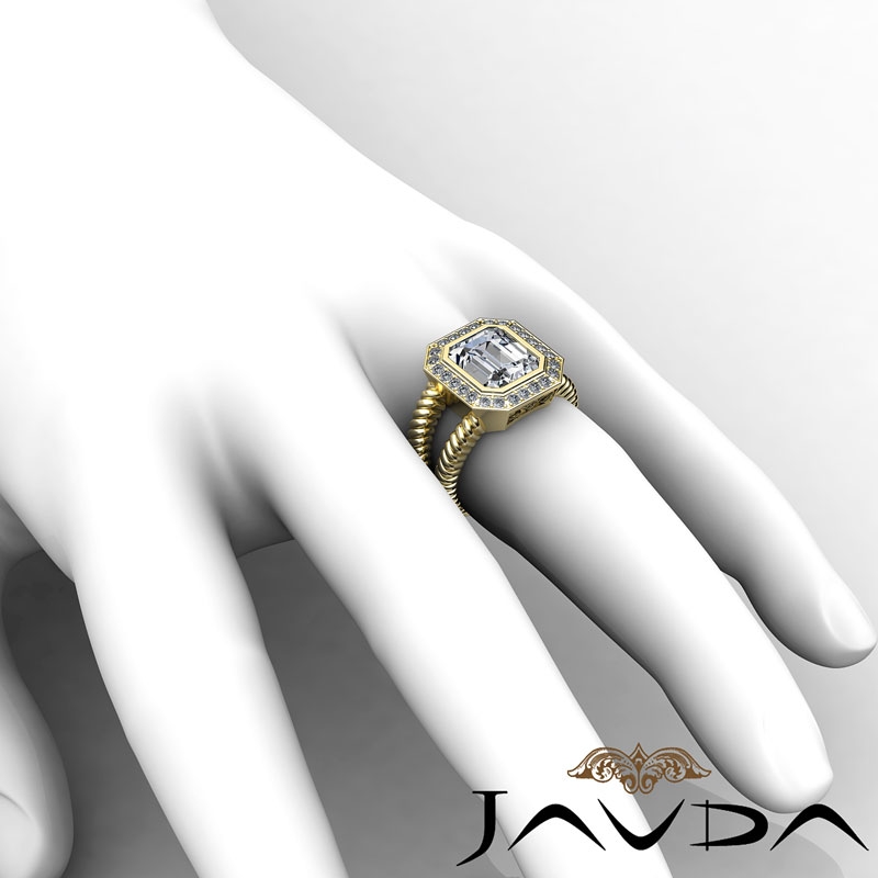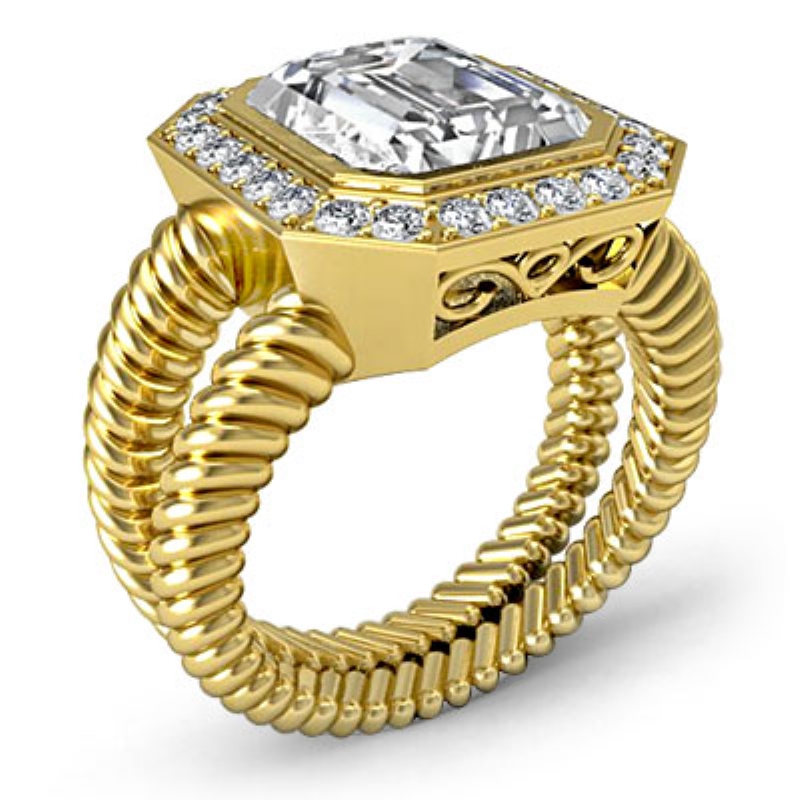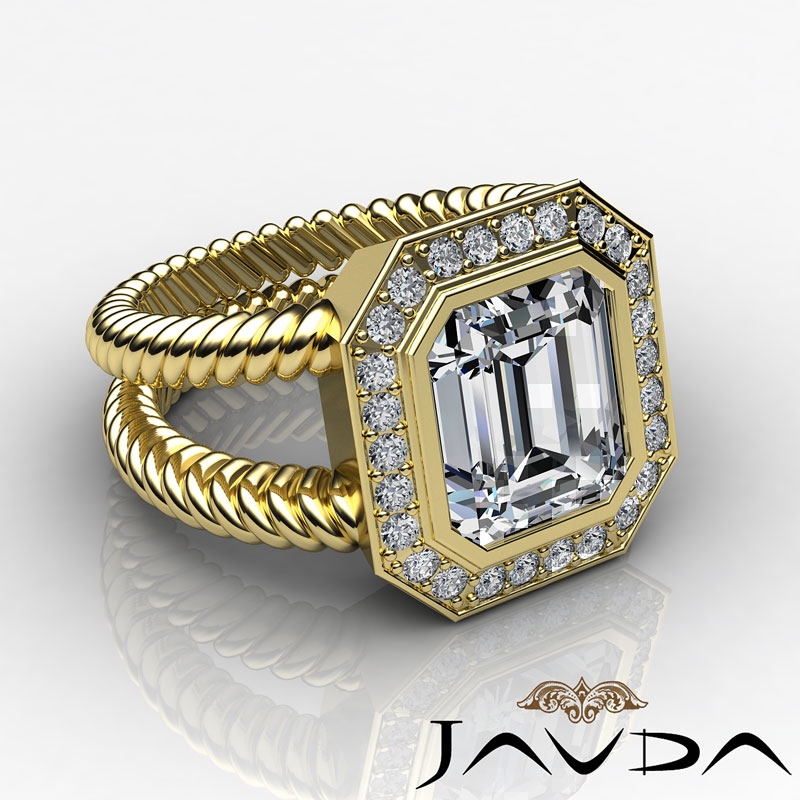 0.35Ct Diamond Engagement Ring Halo 18k Yellow Gold Emerald Semi Mount.