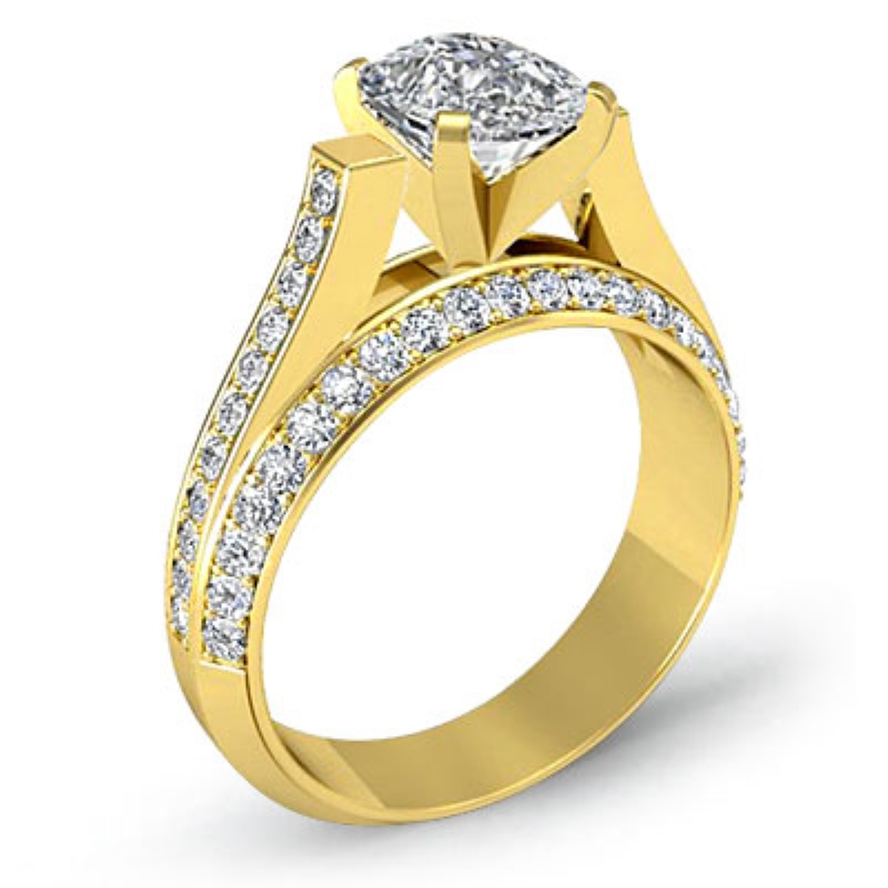 style Engagement Ring, center is Cushion shape Diamond Report by GIA, E Color & VVS2 clarity, Made in 18k Yellow Gold (2.4 ct. tw.)