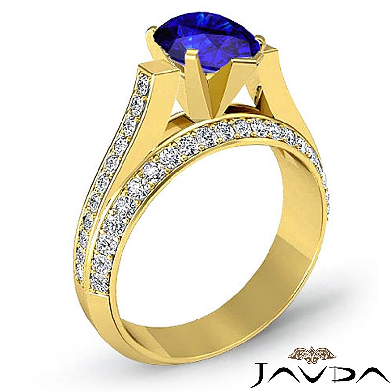 style Engagement Ring, center is Pear shape D Block Tanzanite Report by , Color & clarity, Made in 18k Yellow Gold (2.4 ct. tw.)