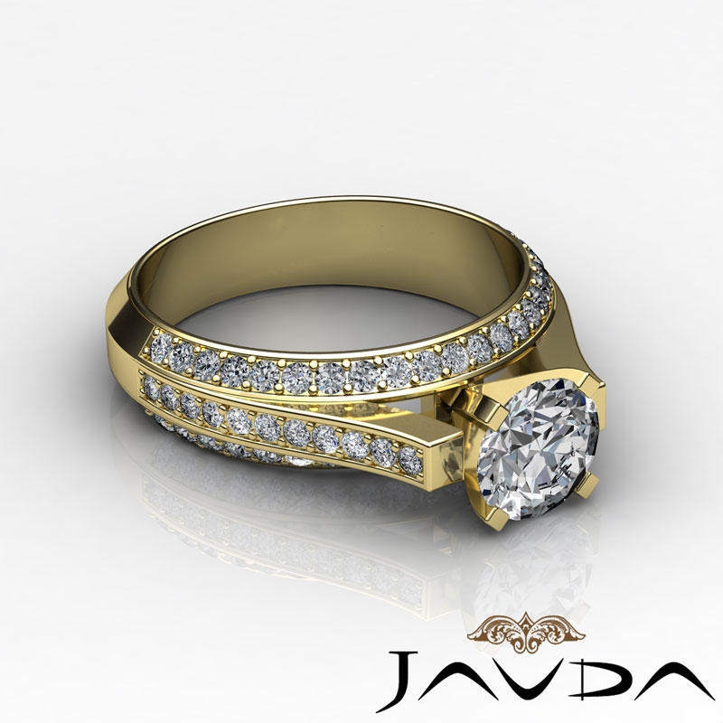 3 Row Womens Round Diamond Engagement Semi Mount Ring 18k Yellow Gold 1.4Ct.