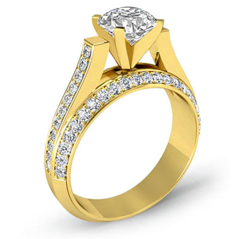 style Engagement Ring, center is Round shape Diamond Report by GIA, I Color & SI1 clarity, Made in 18k Yellow Gold (2.2 ct. tw.)