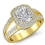 0.55Ct Halo Setting Diamond Engagement Cushion Semi Mount Ring 18k Yellow Gold.