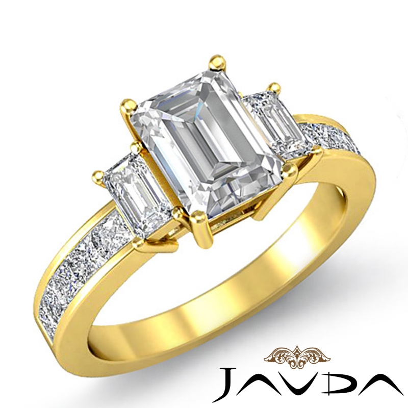 Emerald Diamond 3Stone Engagement Ring 18k Yellow Gold Princess Channel 1Ct.