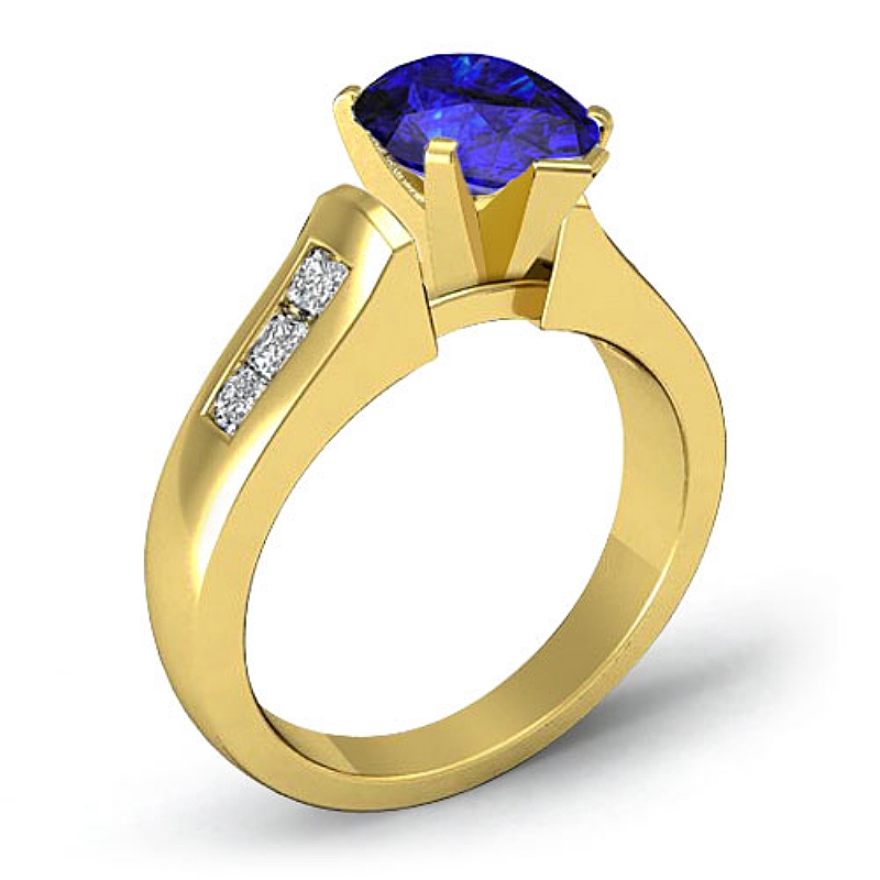 0.6Ct Princess Channel Diamond Engagement Ring Semi Mount 18k Yellow Gold.