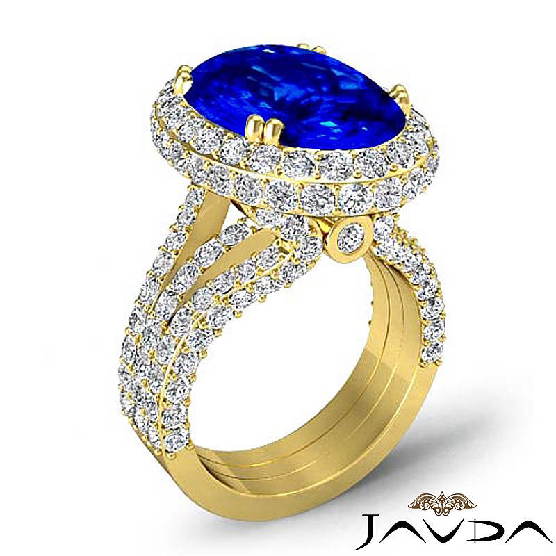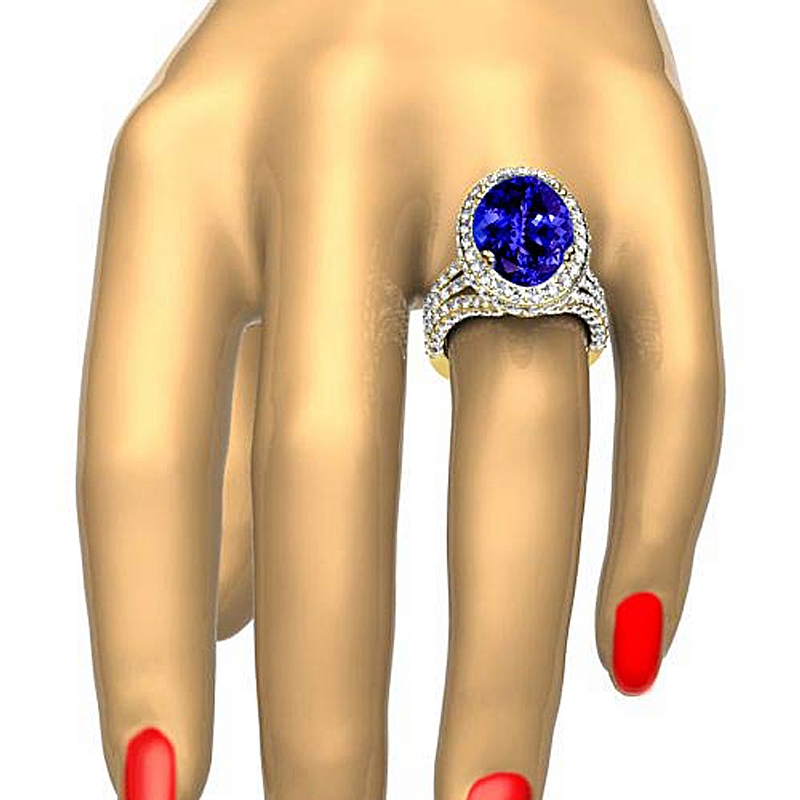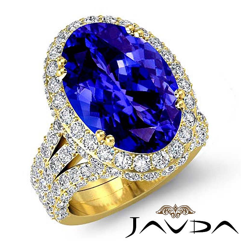 Circa Halo Triple Shank style Engagement Ring, center is Oval shape D Block Tanzanite Report by , Color & clarity, Made in 14k Yellow Gold (3.2 ct. tw.)