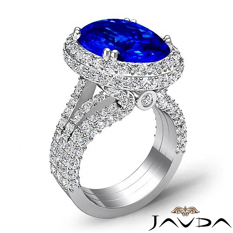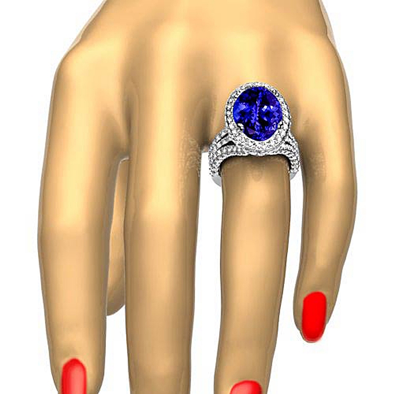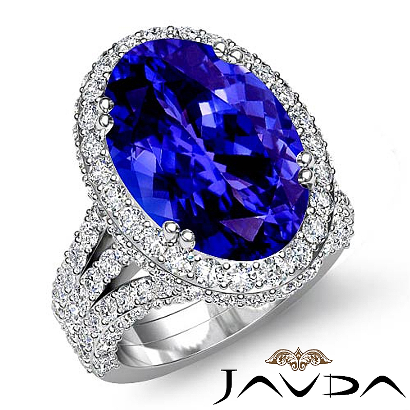 Circa Halo Triple Shank style Engagement Ring, center is Oval shape D Block Tanzanite Report by , Color & clarity, Made in 18k White Gold (3.2 ct. tw.)