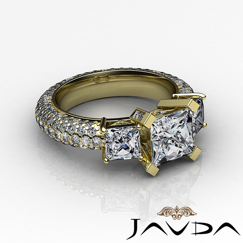 Three 3 Stone Round Diamond Engagement Ring 18k Yellow Gold Princess Semi Mount 2.8Ct.