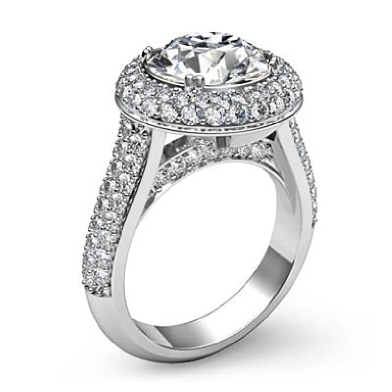 Diamond Engagement Ring Halo Platinum 950 Round Semi Mount 1.5Ct.