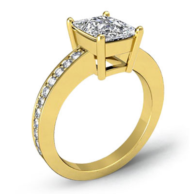 0.25Ct Princess Diamond Engagement Side Stone Ring Setting 18k Yellow Gold.