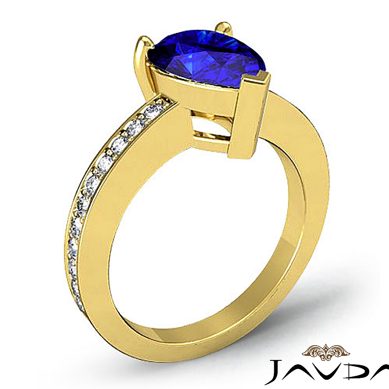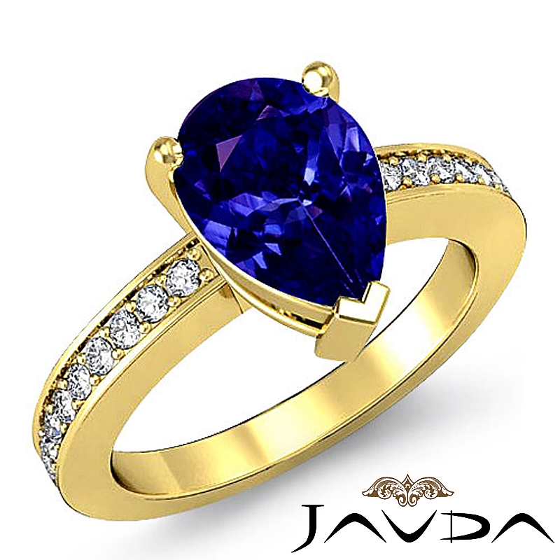 style Engagement Ring, center is Pear shape D Block Tanzanite Report by , Color & clarity, Made in 18k Yellow Gold (1.25 ct. tw.)
