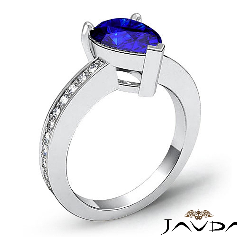 style Engagement Ring, center is Pear shape D Block Tanzanite Report by , Color & clarity, Made in Platinum 950 (1.25 ct. tw.)