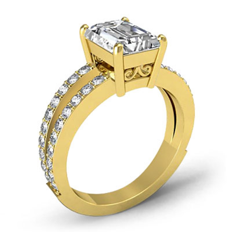 style Engagement Ring, center is Emerald shape Diamond Report by GIA, F Color & VS2 clarity, Made in 14k Yellow Gold (1.57 ct. tw.)