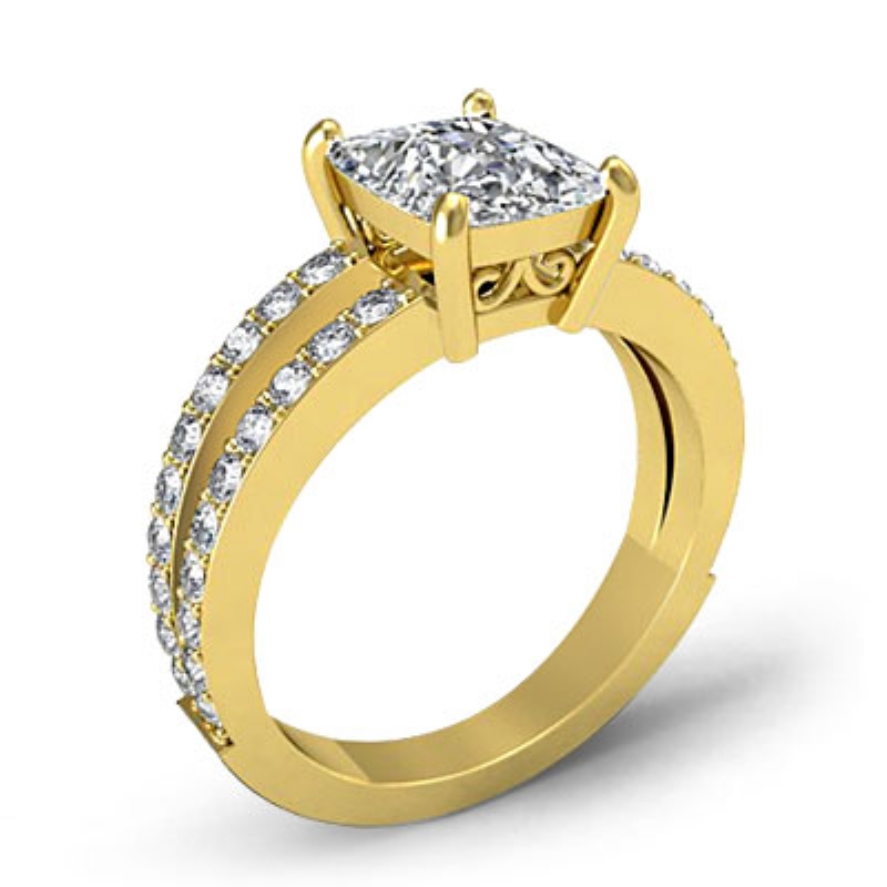 0.5Ct Princess Diamond Split Shank Engagement Ring Setting 14k Yellow Gold.