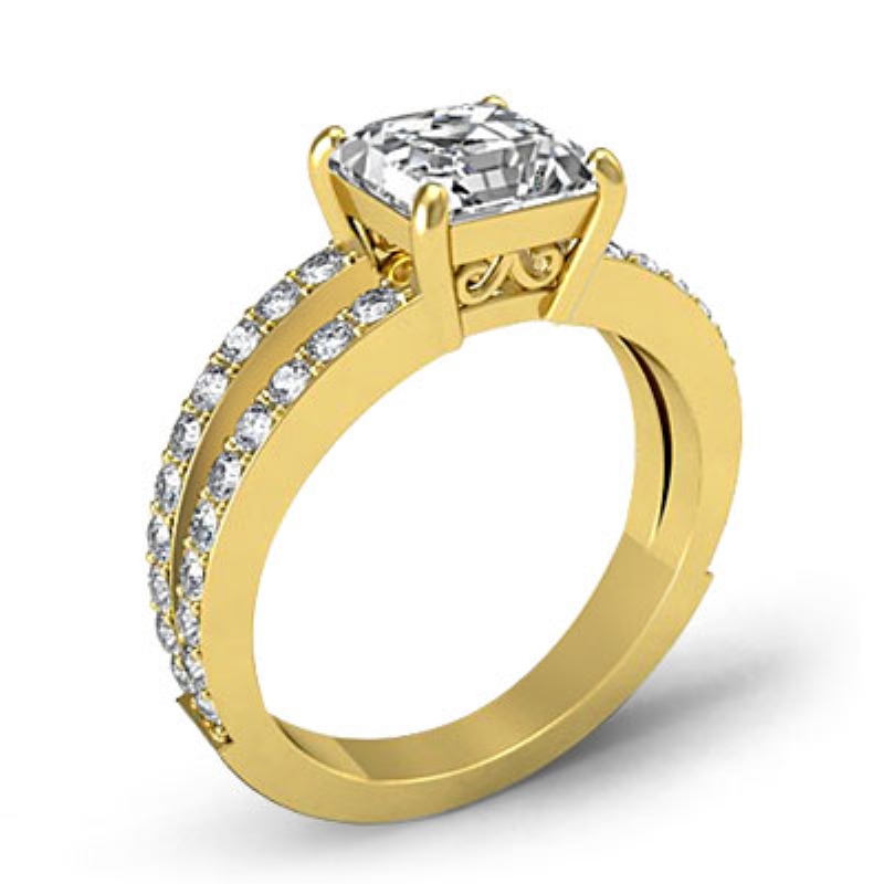 style Engagement Ring, center is Asscher shape Diamond Report by IGI, D Color & VS1 clarity, Made in 14k Yellow Gold (3 ct. tw.)