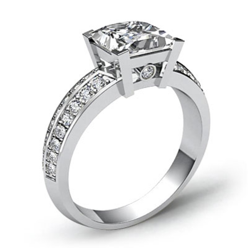 0.3Ct Princess Diamond Engagement Ring Side Stone 18k White Gold Semi Mount.