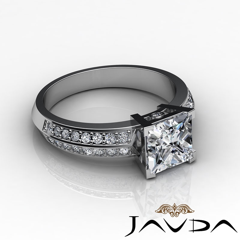 style Engagement Ring, center is Princess shape Diamond Report by GIA, F Color & SI2 clarity, Made in 18k White Gold (1.21 ct. tw.)