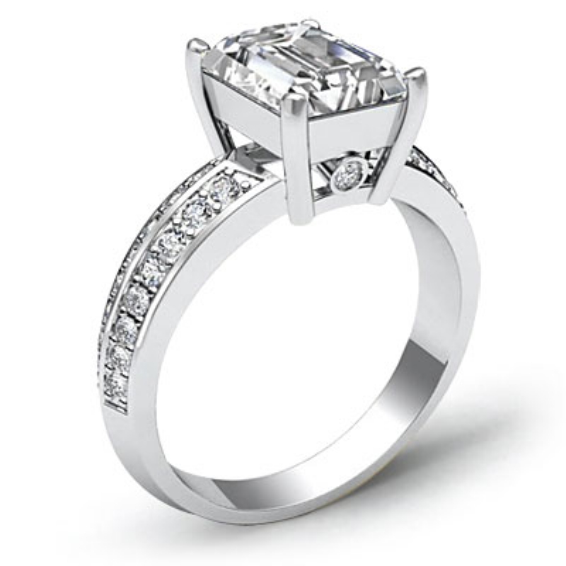 style Engagement Ring, center is Emerald shape Diamond Report by IGI, D Color & VS1 clarity, Made in 18k White Gold (1.3 ct. tw.)