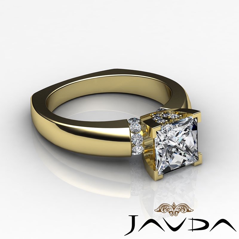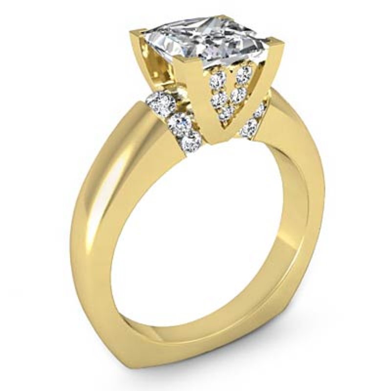 style Engagement Ring, center is Princess shape Diamond Report by GIA, E Color & VS2 clarity, Made in 14k Yellow Gold (1.25 ct. tw.)
