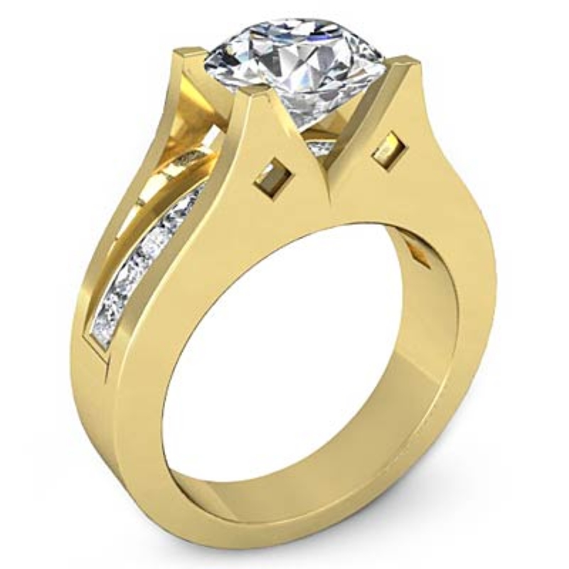 0.85Ct Princess Channel Diamond Engagement Ring 18k Yellow Gold Semi Mount.