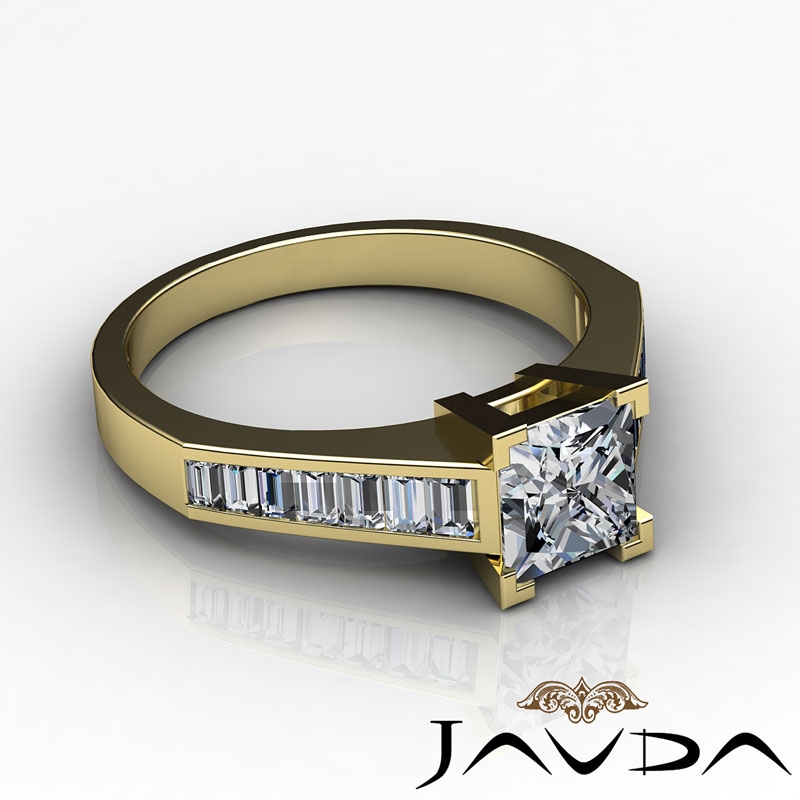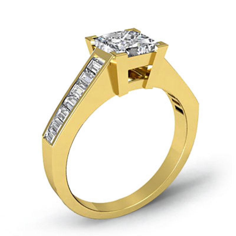 0.85Ct Baguette Channel Diamond Engagement Ring Setting 18k Yellow Gold - javda.com
