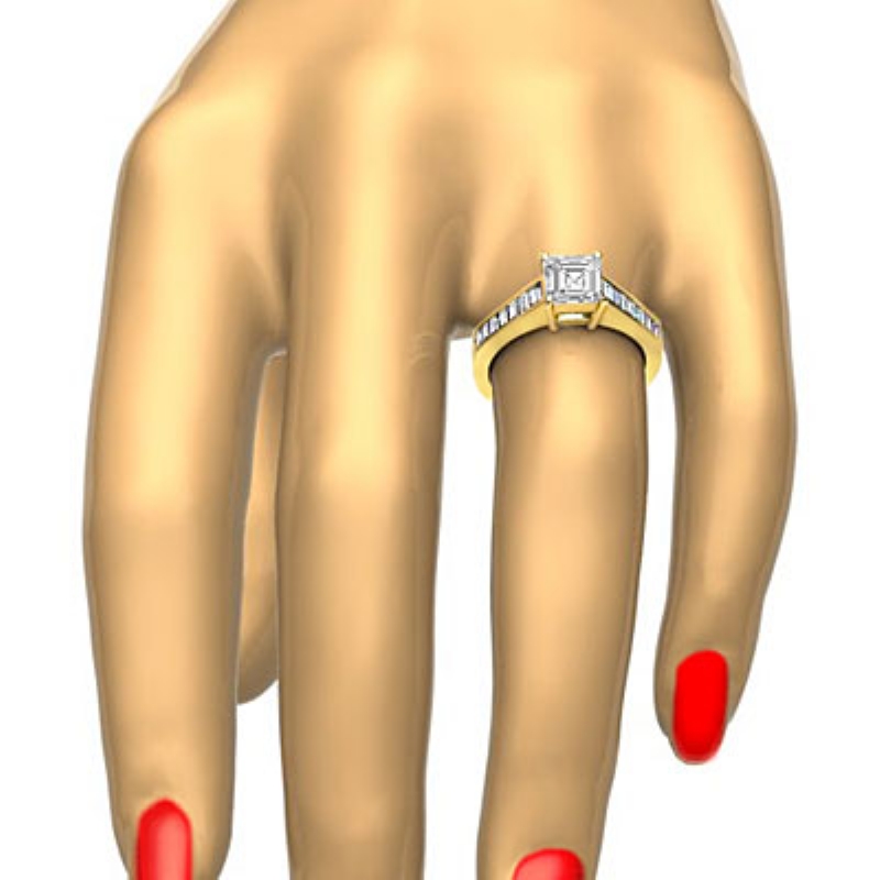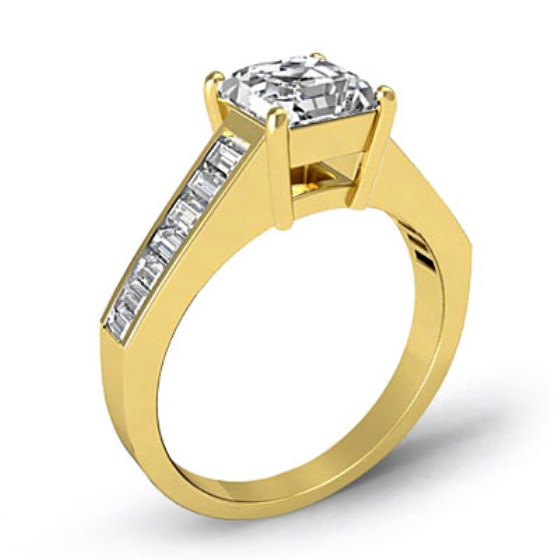 0.85Ct Baguette Channel Diamond Engagement Ring Setting 18k Yellow Gold.