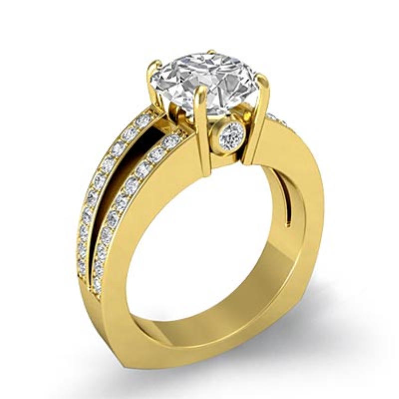 0.35Ct Round Side Diamond Engagement Ring Classic 14k Yellow Gold Semi Mount.