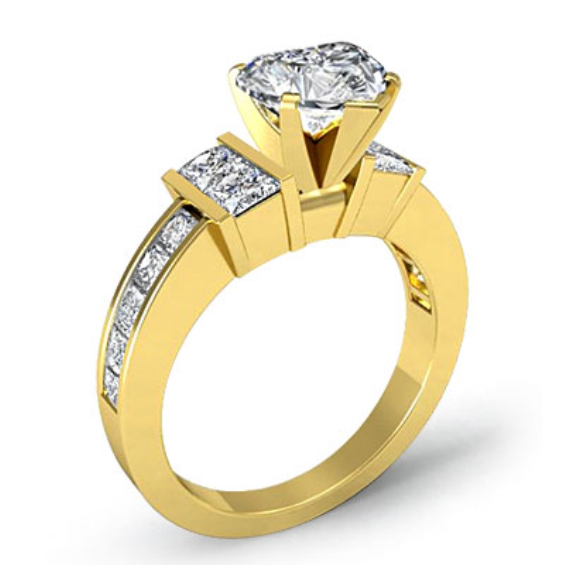 1Ct Diamond Engagement Semi Mount Ring Princess Channel Setting 14k Yellow Gold.