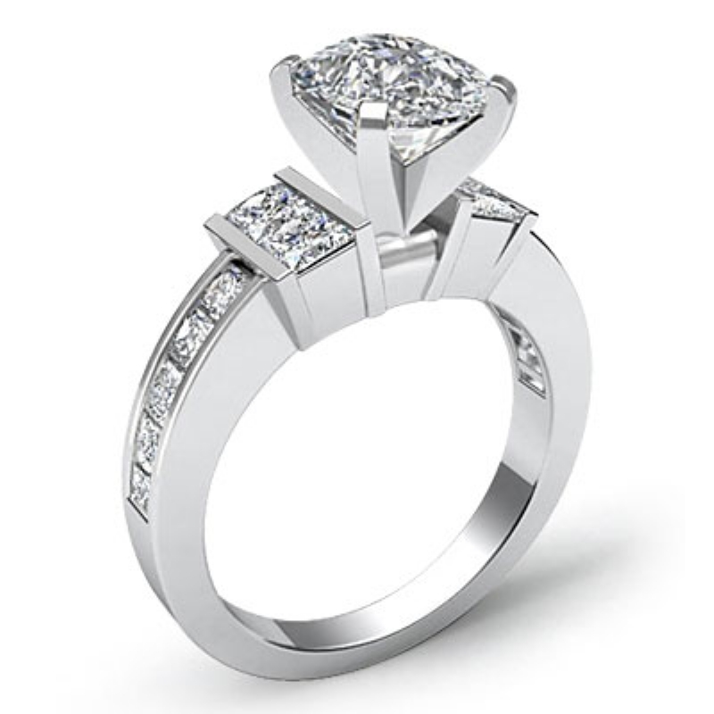 Channel Set Shank Prong style Engagement Ring, center is Cushion shape Diamond Report by GIA, D Color & VS1 clarity, Made in 18k White Gold (1.5 ct. tw.)