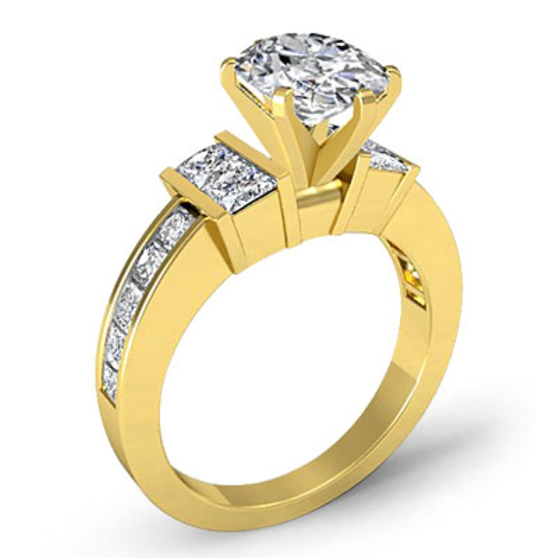 Channel Set Shank Prong style Engagement Ring, center is Oval shape Diamond Report by GIA, J Color & VS2 clarity, Made in 18k Yellow Gold (1.6 ct. tw.)