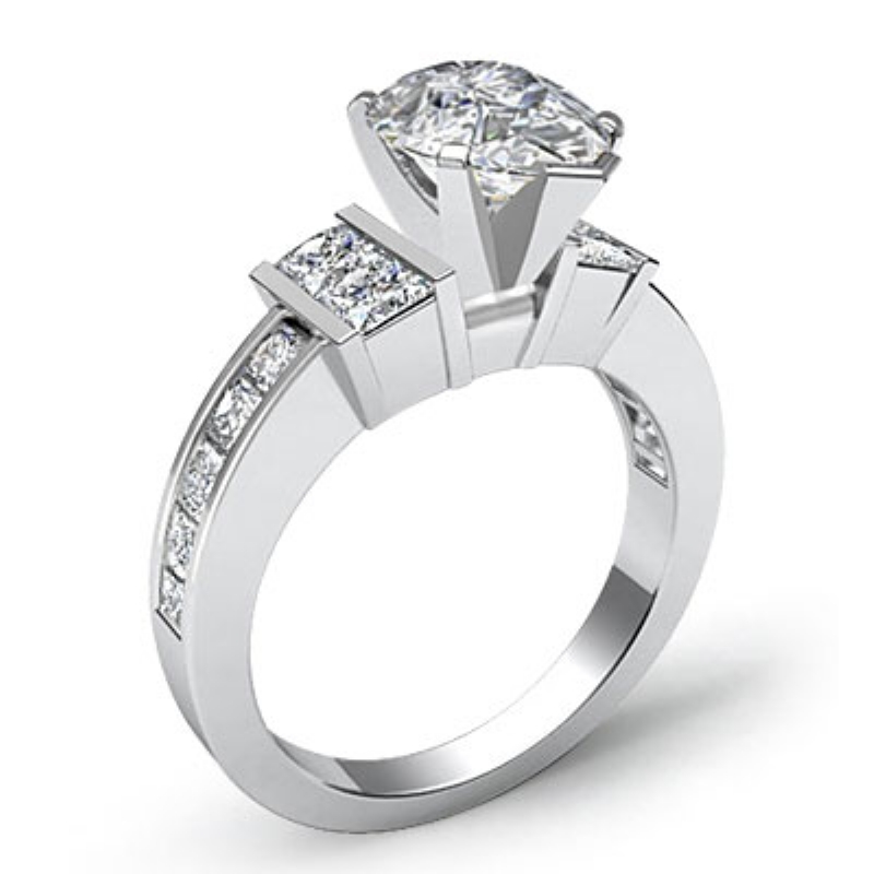 Channel Set Shank Prong style Engagement Ring, center is Pear shape Diamond Report by GIA, H Color & VVS1 clarity, Made in Platinum 950 (1.5 ct. tw.)