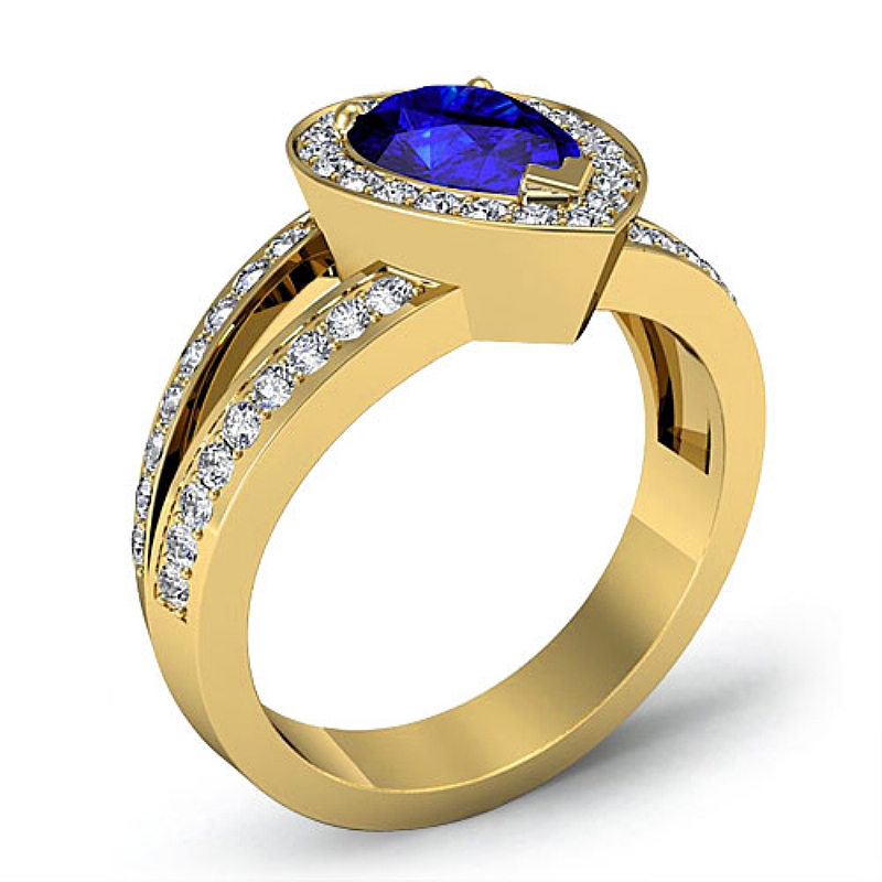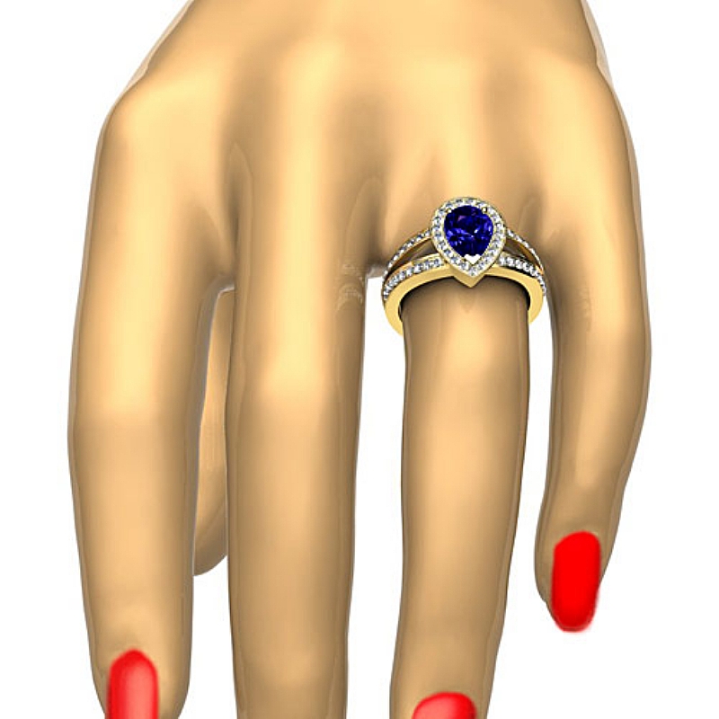 style Engagement Ring, center is Pear shape D Block Tanzanite Report by , Color & clarity, Made in 18k Yellow Gold (1.55 ct. tw.)