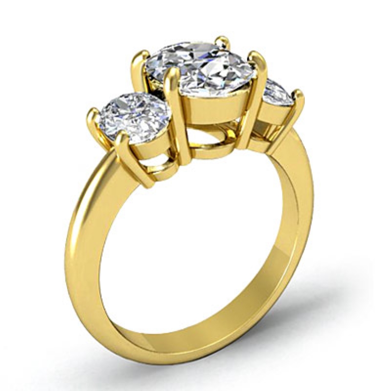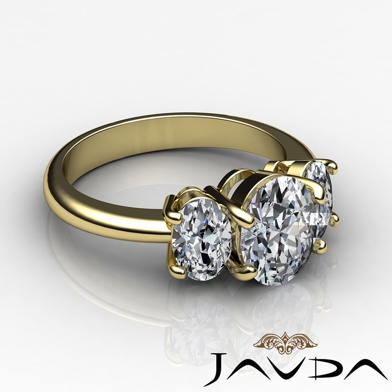 Basket Prong 3 Stone style Engagement Ring, center is Oval shape Diamond Report by GIA, I Color & SI1 clarity, Made in 14k Yellow Gold (1.91 ct. tw.)