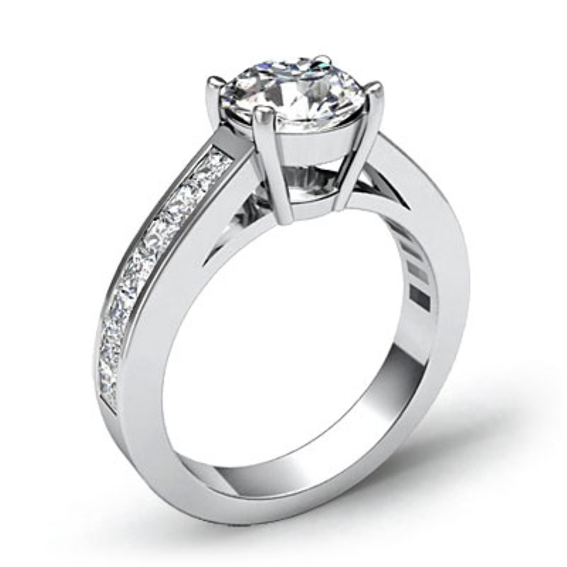 0.5Ct Round Diamond Engagement Ring Channel Set Semi Mount 18k White Gold.