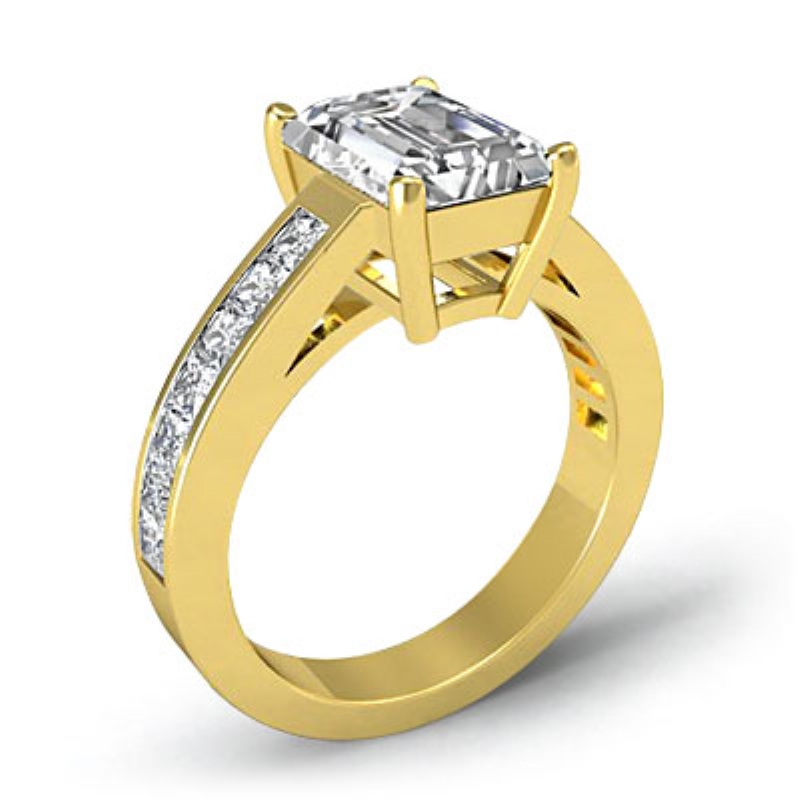 style Engagement Ring, center is Emerald shape Diamond Report by GIA, D Color & VVS2 clarity, Made in 18k Yellow Gold (1 ct. tw.)