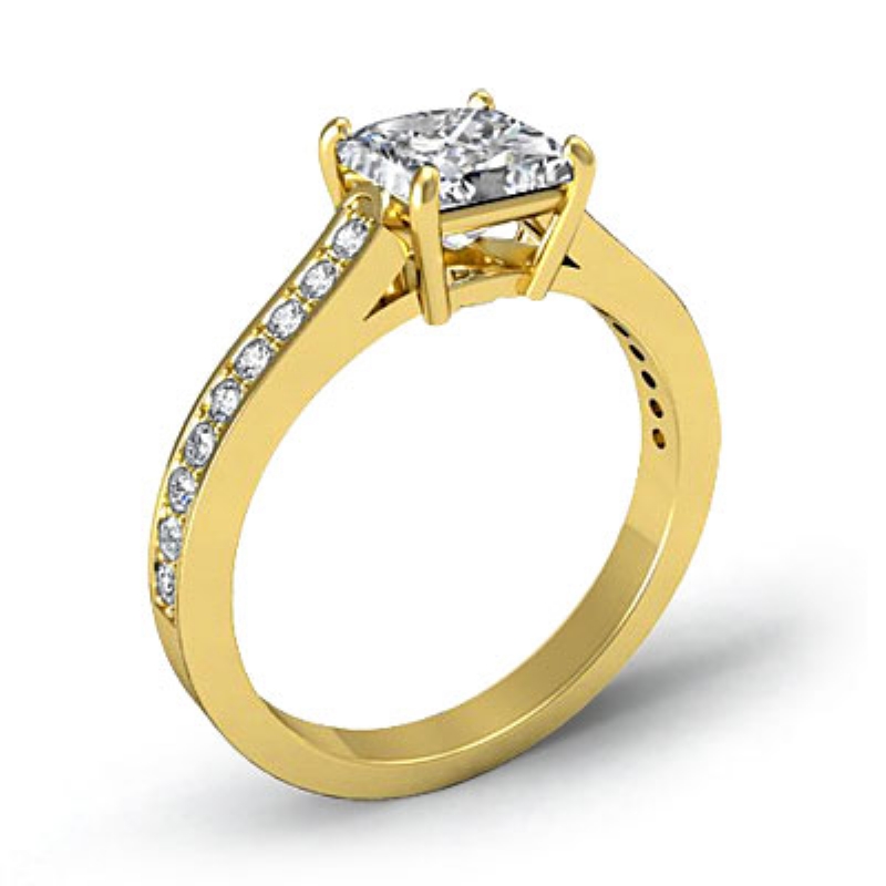 style Engagement Ring, center is Princess shape Diamond Report by GIA, E Color & VS2 clarity, Made in 14k Yellow Gold (0.78 ct. tw.)