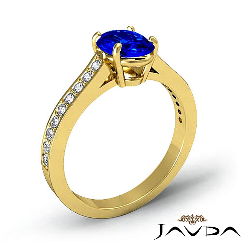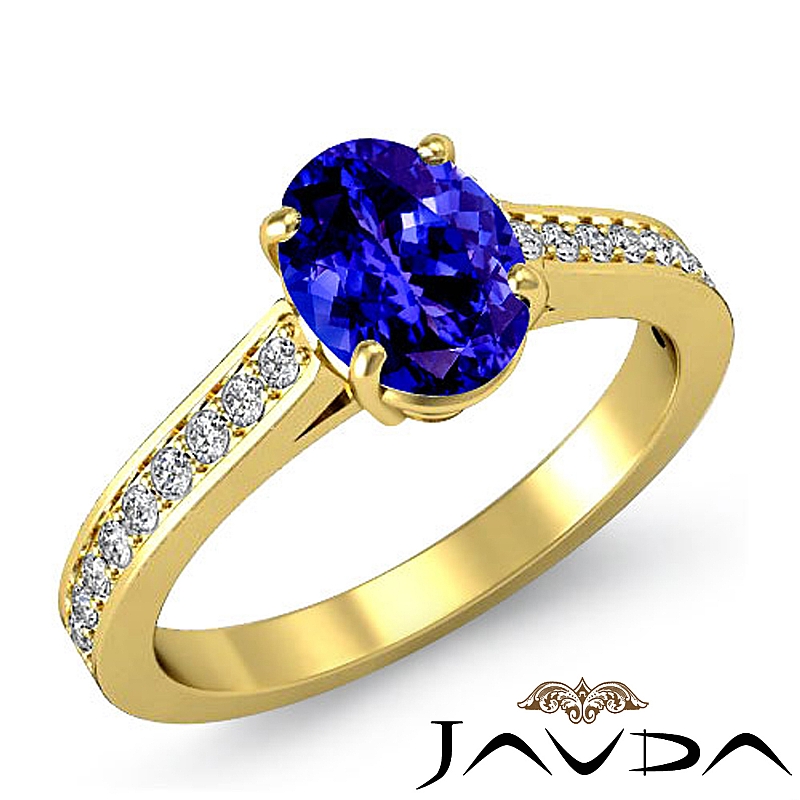 style Engagement Ring, center is Oval shape D Block Tanzanite Report by , Color & clarity, Made in 14k Yellow Gold (1.25 ct. tw.)