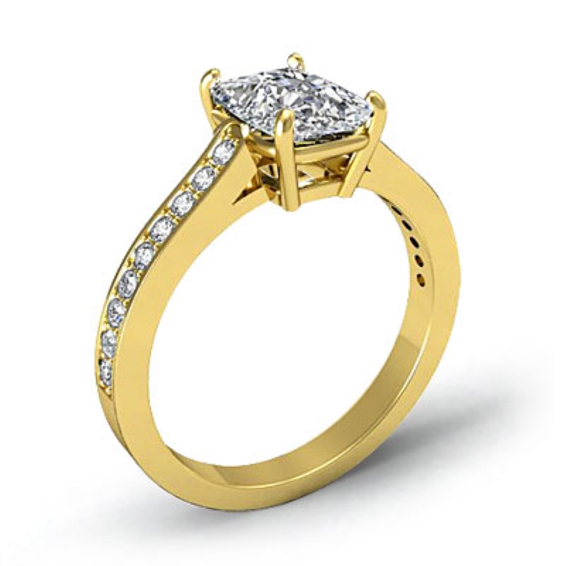 style Engagement Ring, center is Cushion shape Diamond Report by GIA, D Color & VS1 clarity, Made in 18k Yellow Gold (0.75 ct. tw.)