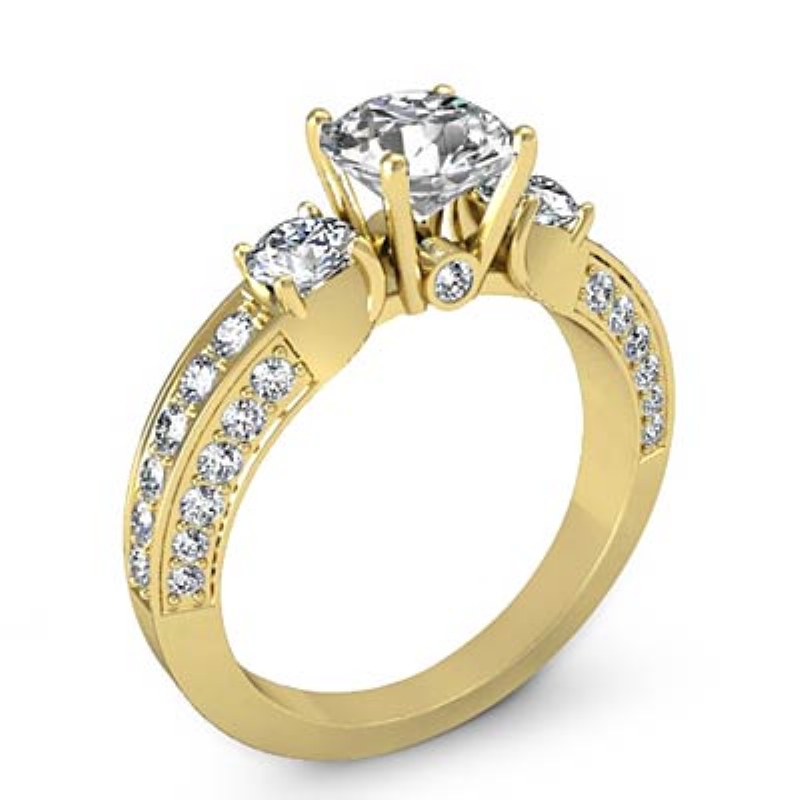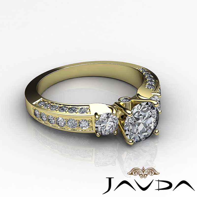 Round Diamond 3 Stone Engagement Ring Bezel 14k Yellow Gold Semi Mount 1.15Ct.