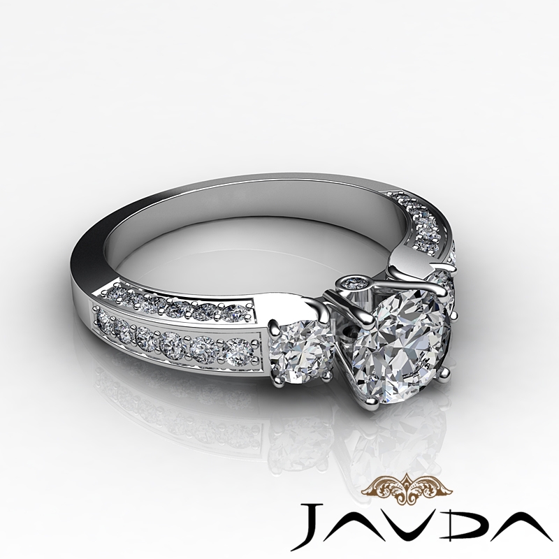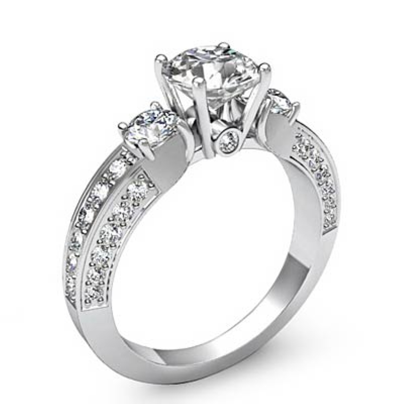Round Diamond 3 Stone Engagement Ring Bezel 18k White Gold Semi Mount 1.15Ct.