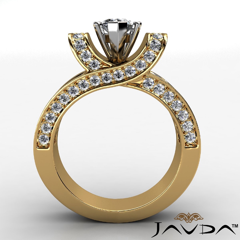 2Ct Round Baguette Diamond Engagement Antique Ring Setting 18k Yellow Gold Semi Mount.