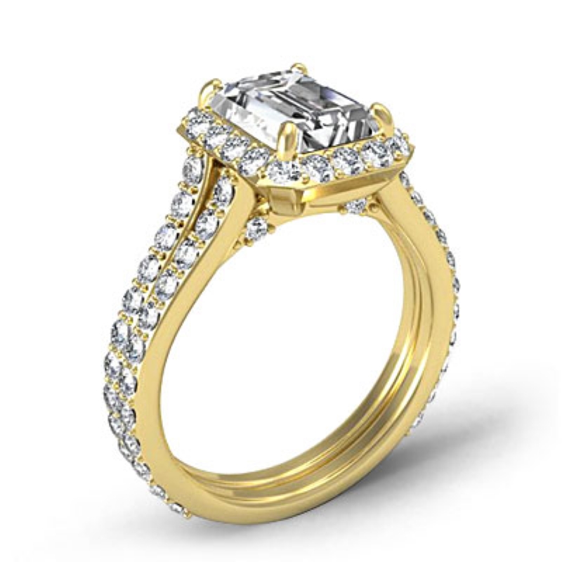 1.3Ct Diamond Engagement Ring Round Semi Mount Halo Pave Setting 14k Yellow Gold - javda.com