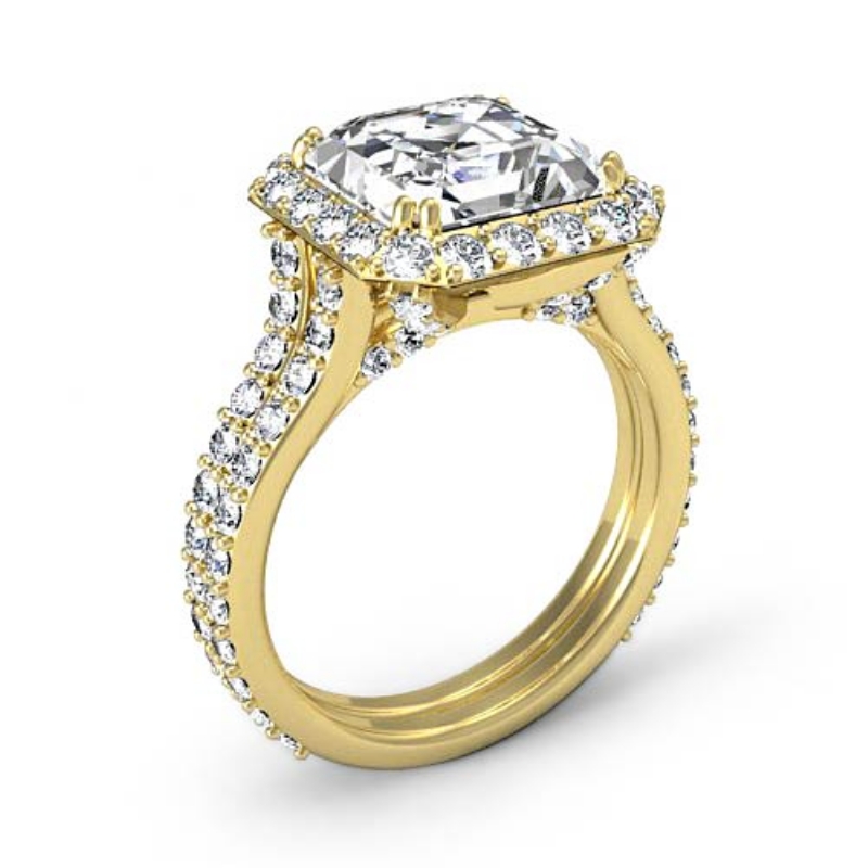 style Engagement Ring, center is Asscher shape Diamond Report by IGI, E Color & VS1 clarity, Made in 14k Yellow Gold (3.8 ct. tw.)