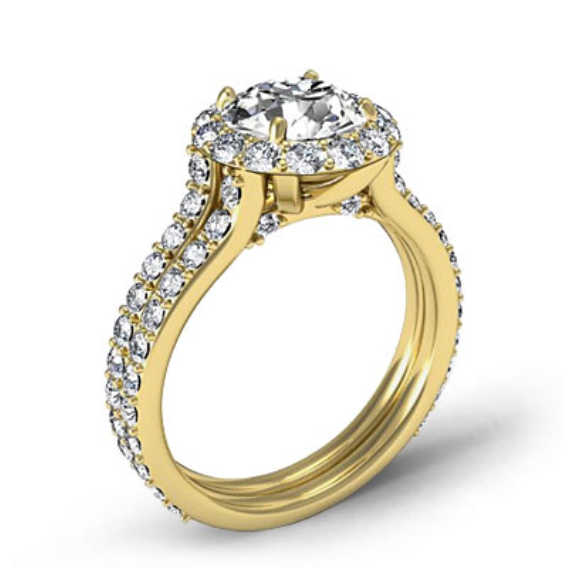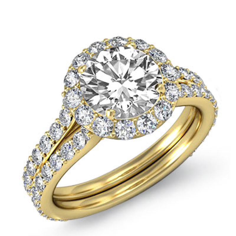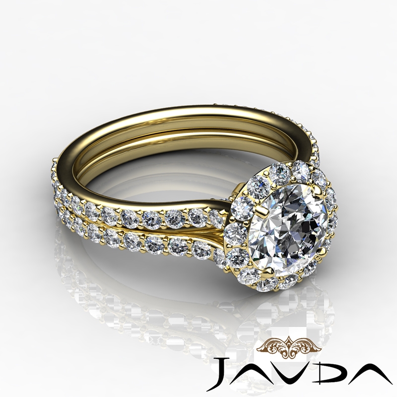 1.3Ct Diamond Engagement Ring Round Semi Mount Halo Pave Setting 14k Yellow Gold.