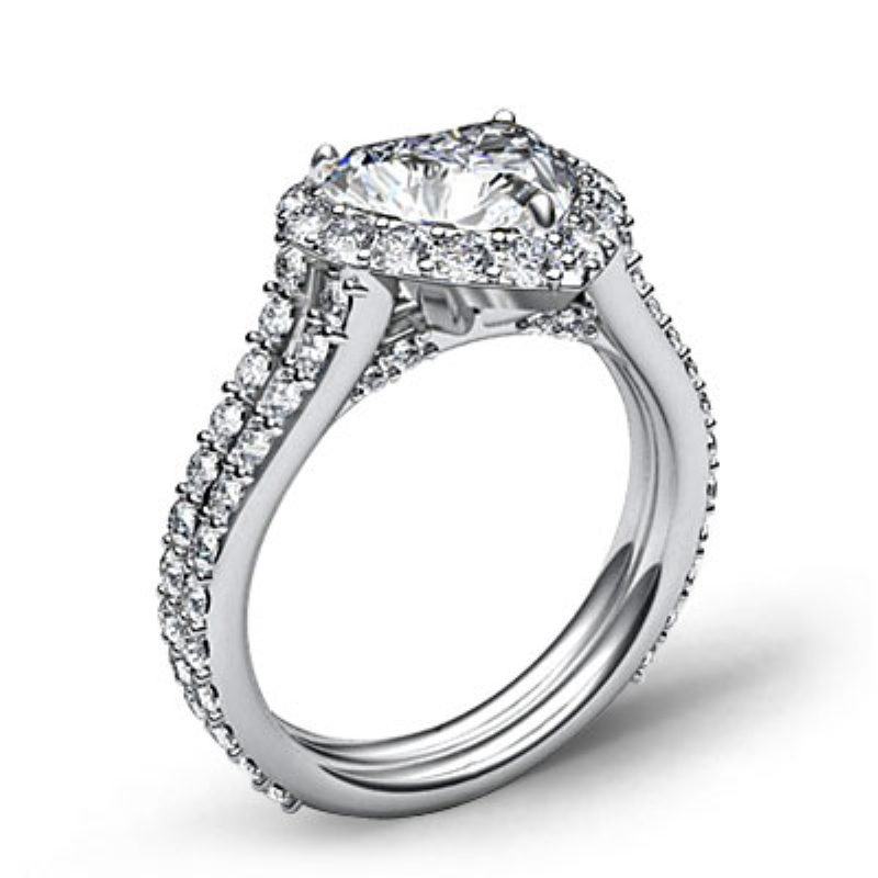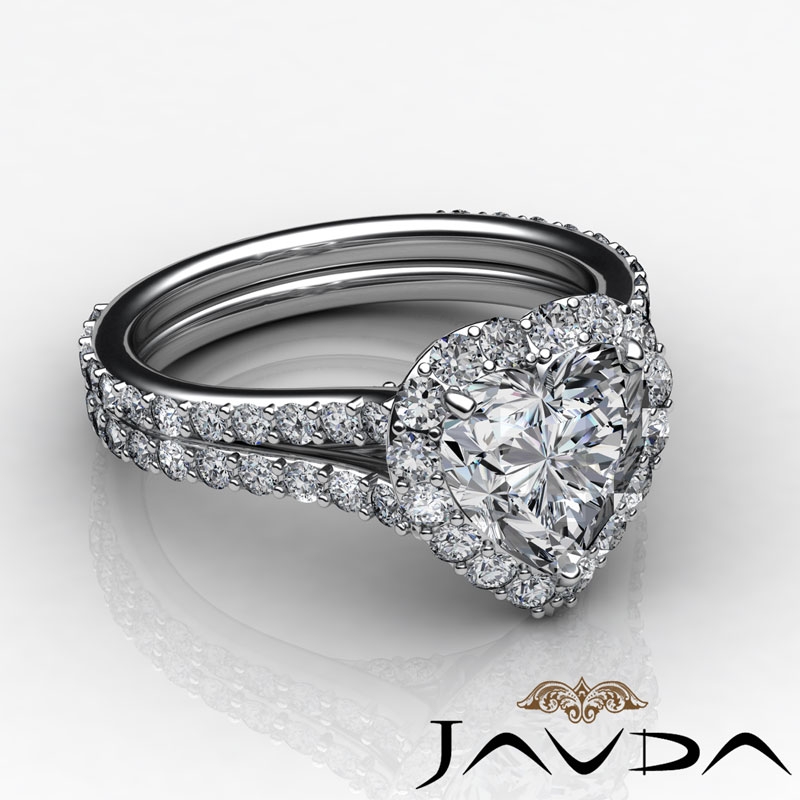 1.3Ct Diamond Engagement Ring Round Semi Mount Halo Pave Setting 18k White Gold.