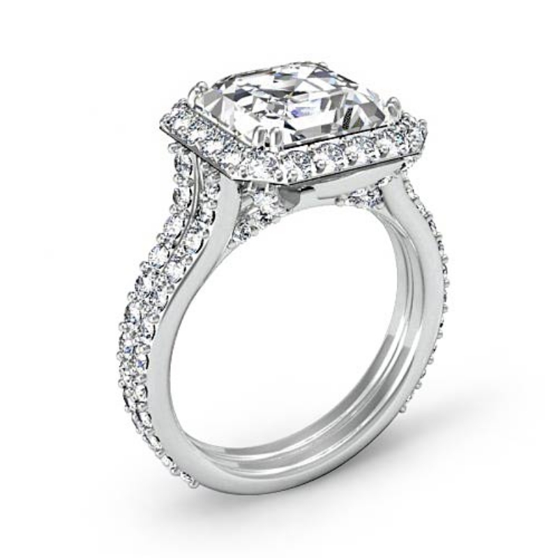 style Engagement Ring, center is Asscher shape Diamond Report by IGI, E Color & VS1 clarity, Made in Platinum 950 (3.8 ct. tw.)